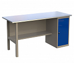 PROFFI-116 Т1 Верстак металлический (однотумбовый) Cтолешница 1600 мм (фанера 24 мм + оцинкованный металл 1 мм), опора, тумба с ящиком и дверью, полка-стенка. Вес - 69/80/92 кг. Объем - 0,4/0,43/0,46 куб. м. Кол-во мест 4/5. (ВхШхГ)870х1600х700