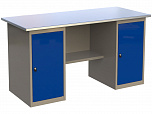 Двухтумбовый. Допустимая нагрузка на столешницу 1000 кг. Опорные элементы выполнены сварными из холоднокатаной стали. Для выполнения сборочных, ремонтных, слесарных, монтажных и других видов работ на производстве, в сервисных центрах, мастерских, гаражах, а также для обучения технологии в учебных заведениях. Комплектуется полкой-стенкой, расположенной под столешницей для удобного размещения габаритного инструмента и оснастки. Размеры верстака: 855x1596x696 мм. Вес: 126 кг. Поставляется в 4 комплектациях на выбор.