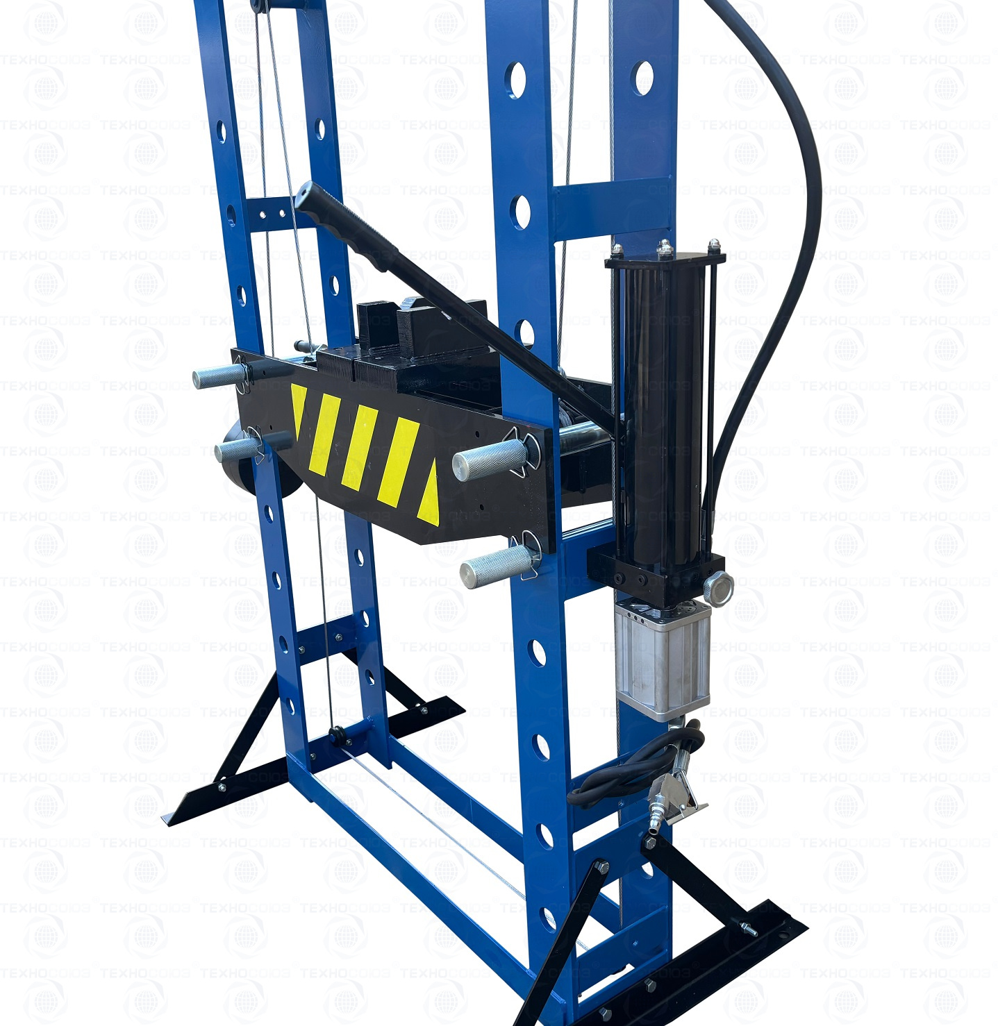 • Пресс гидравлический оснащен ручной лебедкой