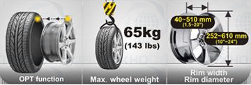 | Максимальный вес колеса, кг | 65 |